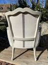 Bergère à coussin : Réfection complète en garniture traditionnelle, aérogommage et peinture lin.
